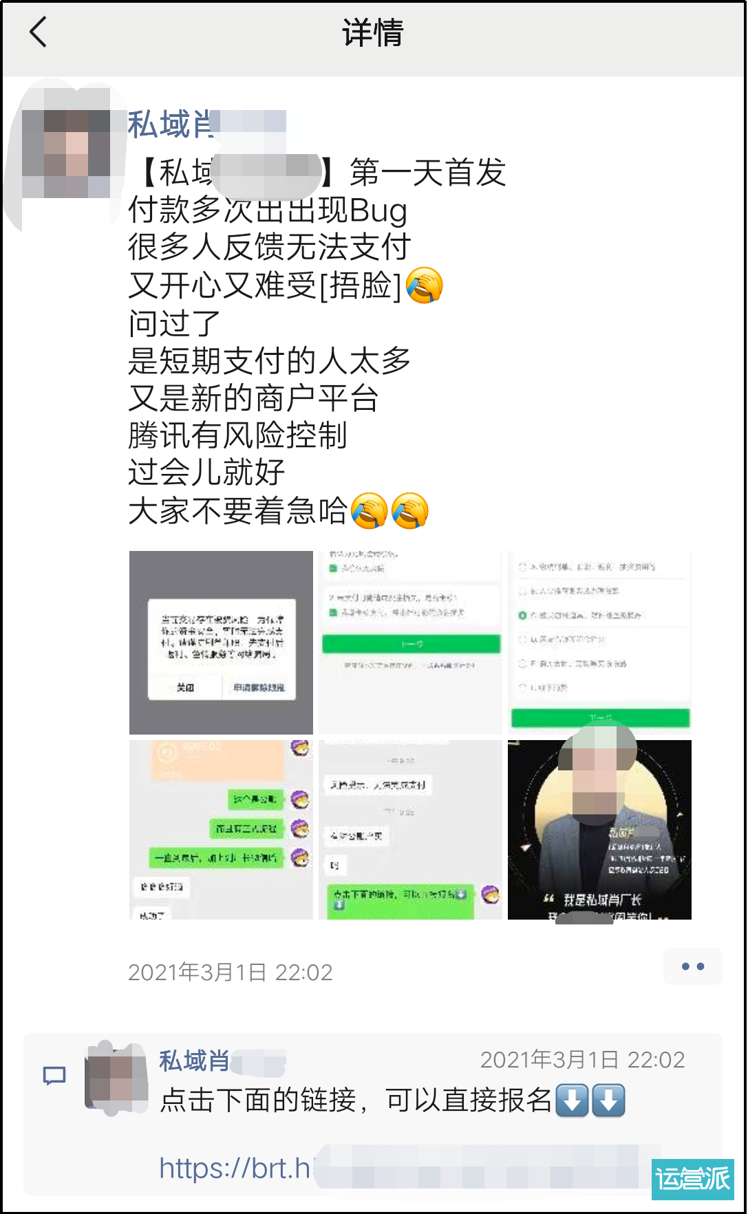 肖XX也没有忘记【意外突发情况】的有效运用。通过系统瘫痪,无法支付等异常情况反馈截图将【意外】暴漏出来,传达活动火爆、活动真实的认知。这本质来说,也是在讲故事。所以,在你的朋友圈发售过程中,一定要善于讲故事,而不是硬广。
