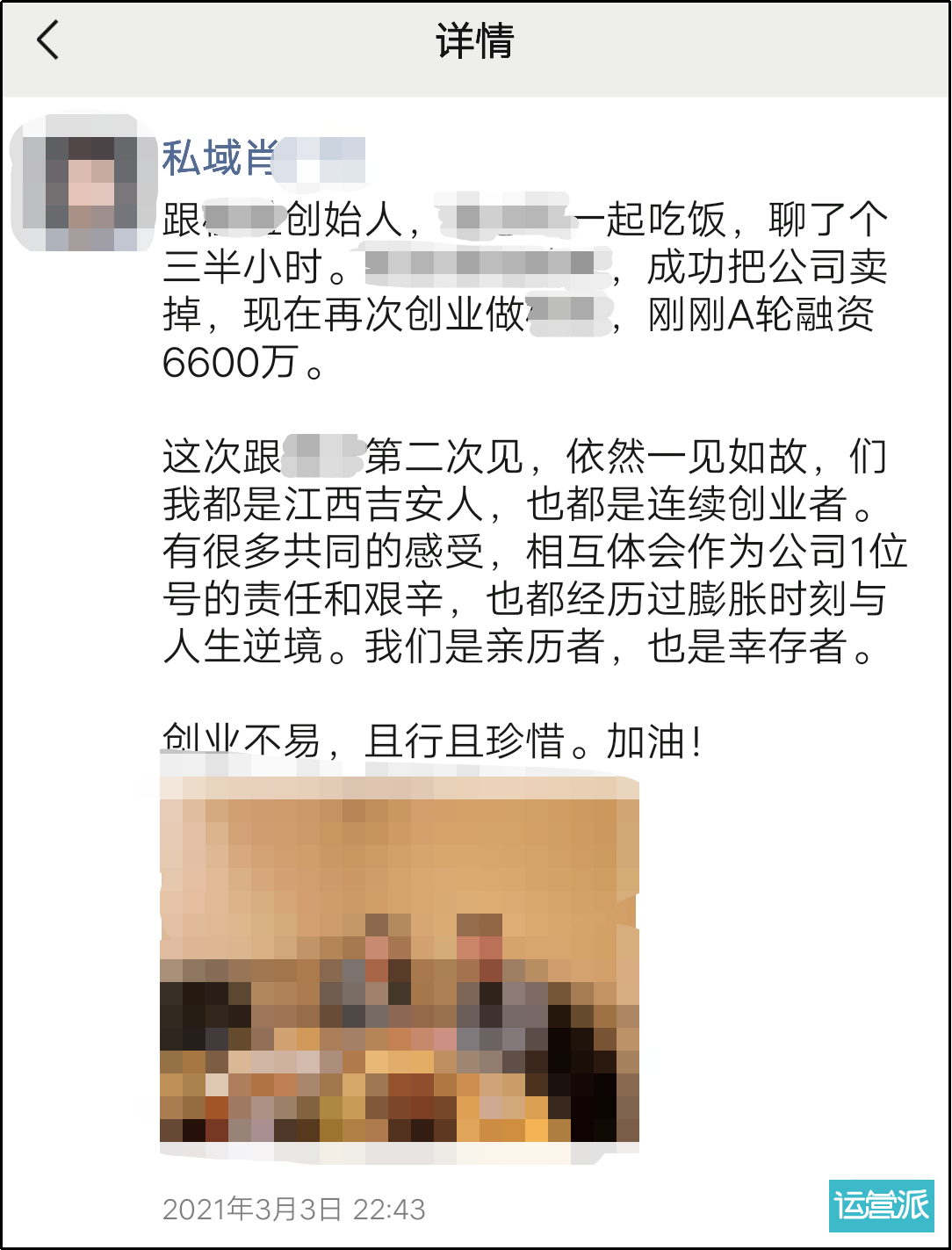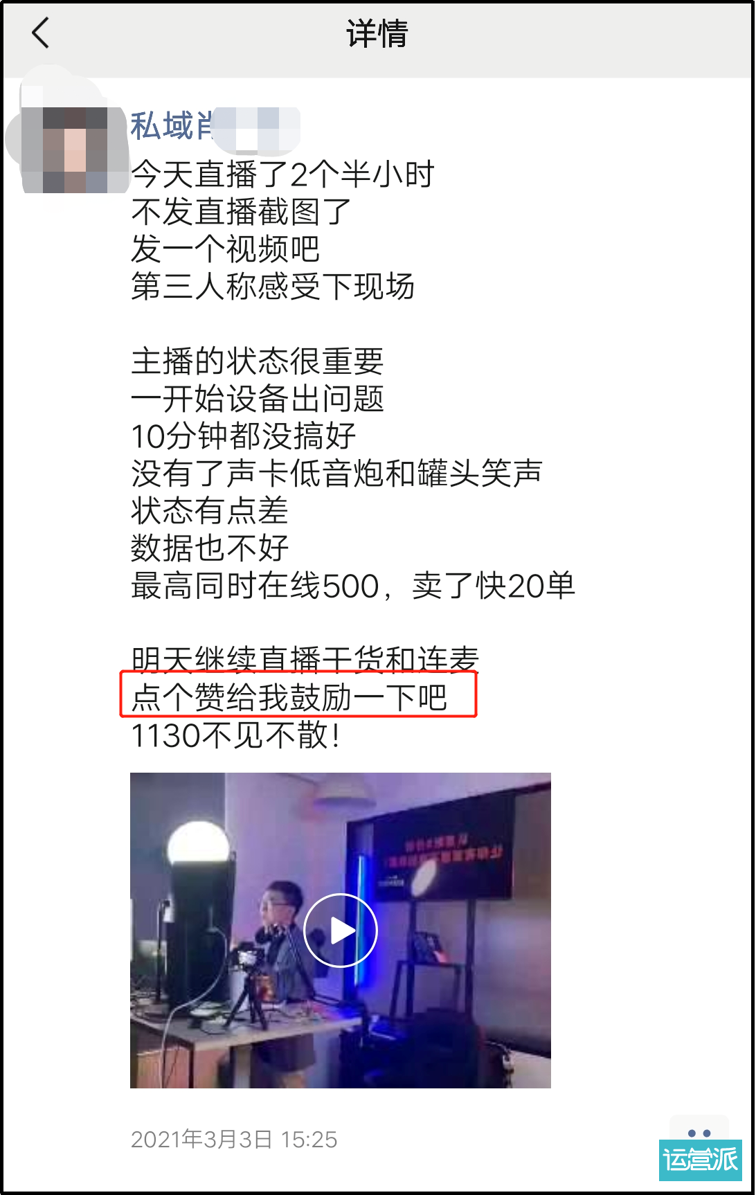 在朋友圈,从多个角度讲述产品功效,产品价值;不断展示自己更多的人格和特质,让用户深入了解我们。润物细无声,循循渐进,才是做私域的正确心态。